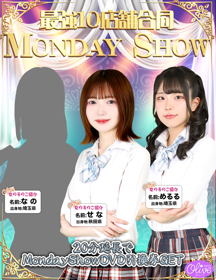 9/1(月)マンデーショーDVDゲット&21時迄60分3400円